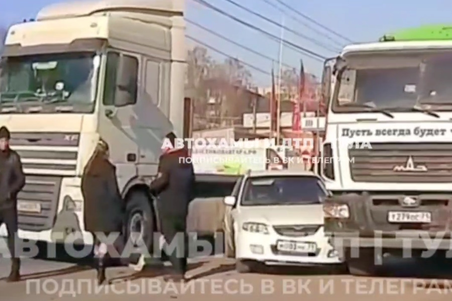 В Туле сегодня днем, 28 февраля, произошло ДТП с участием легковушки и двух большегрузов на улице Рязанской, как пишут очевидцы в социальных сетях.