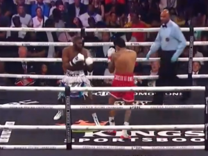 Претендент продолжает пропускать. Рефери, похоже, уже близок к тому, чтобы вмешаться и остановить противостояние. А тем временем Вилья завёлся и даже продолжил выбрасывать удары после гонга.
