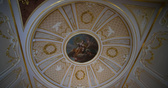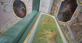 Ну а в Кабинете Екатерины II на себя обращают внимание сюжеты из античных мифов, а также написанные по серебру растительные побеги, пальмовые листья, ленты, цветы, рокайли, переходящие в листья аканта, и птицы.