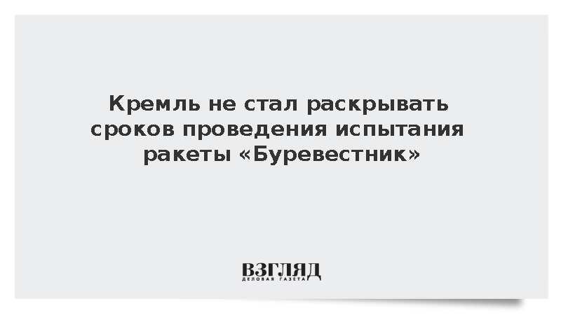 Кремль не стал раскрывать сроков проведения испытания ракеты «Буревестник»