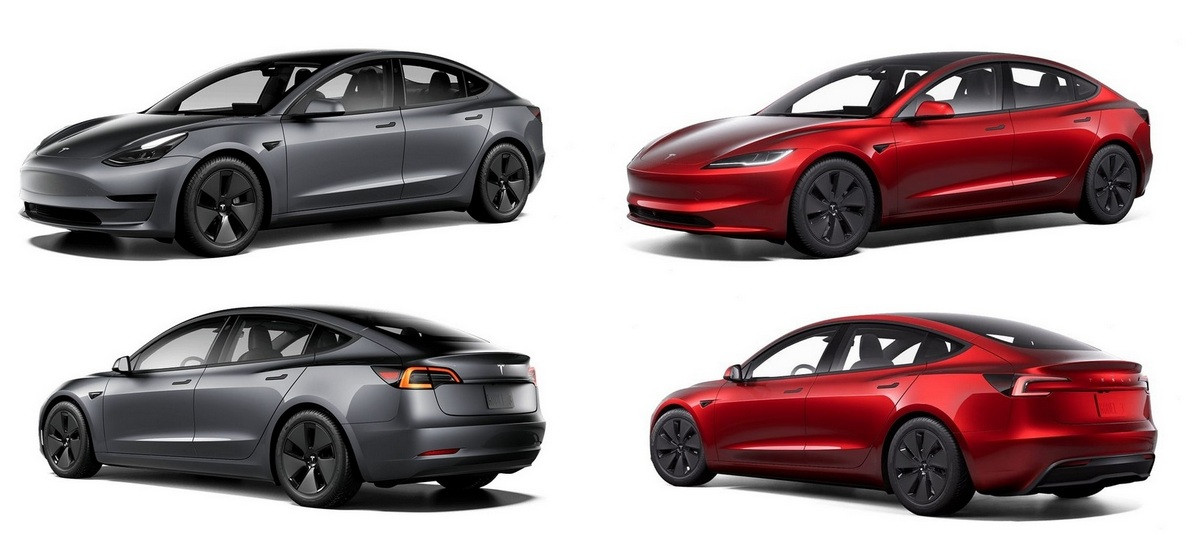 Model 3 полностью перекроили переднюю часть: седан обрел новые фары, бампер и капот, заменили даже крылья. Другим стал и задний бампер, а также фонари и крышка багажника, вдобавок на корме вместо привычной эмблемы теперь красуется надпись Tesla. Еще освежили палитру цветов кузова, плюс «тройке» положены колеса нового дизайна (18- или 19-дюймовые). После рестайлинга длина седана увеличилась на 26 мм до 4720 мм, дорожный просвет, напротив, уменьшен на 2 мм до 138 мм.