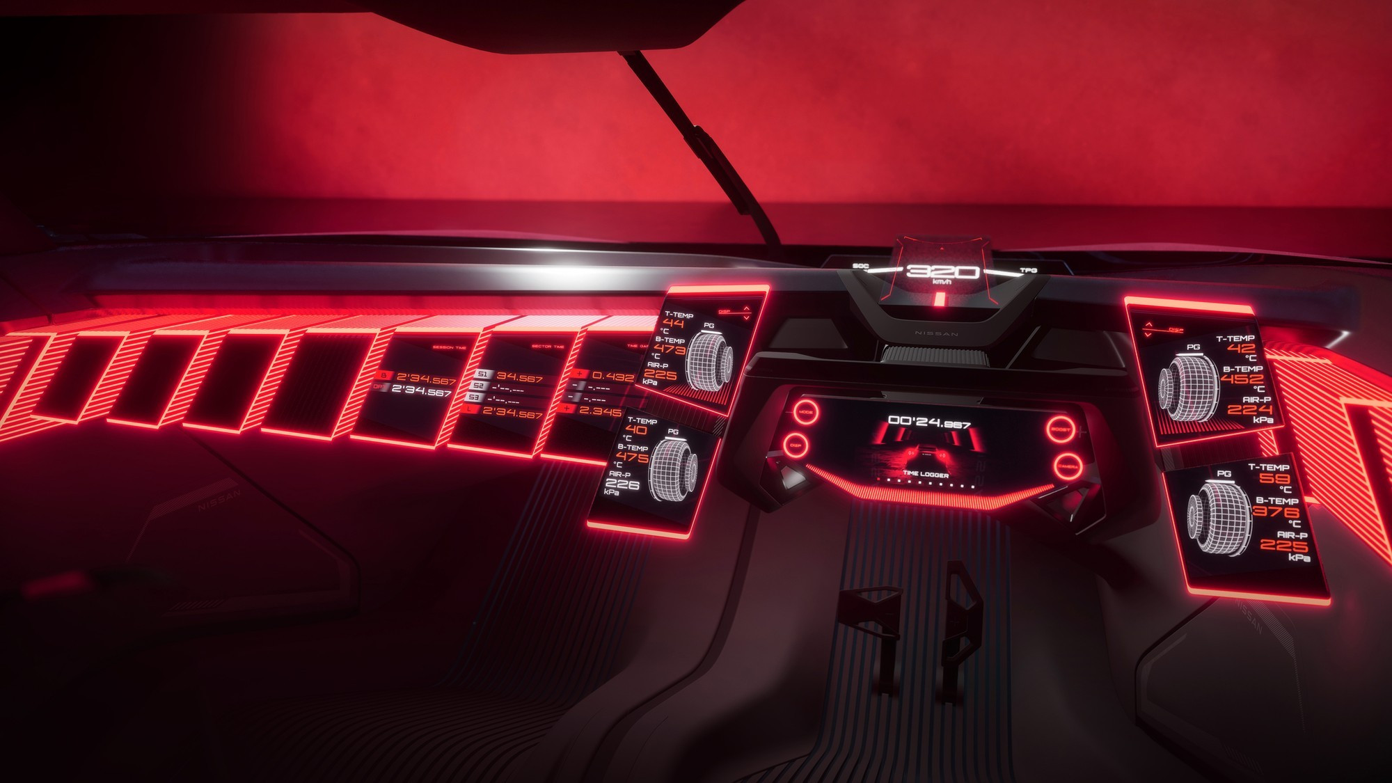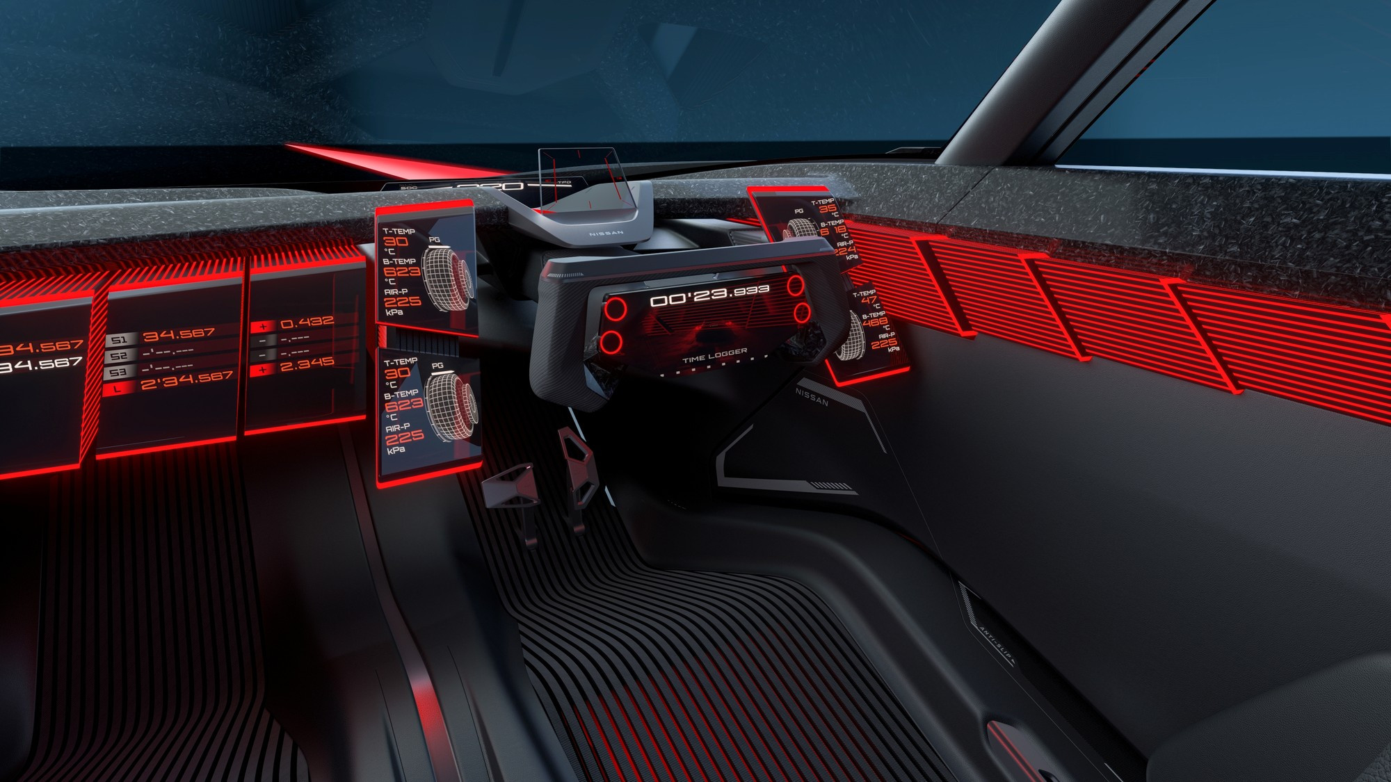 Графика мультимедийной системы Nissan GT-R поколения R35, как известно, разрабатывалась совместно с компанией Polyphony Digital, прославившейся серией компьютерных игр Gran Turismo. Сотрудничество между Polyphony Digital и Nissan продолжилось и при разработке Hyper Force, только теперь оно намного шире, поскольку салон концепта буквально усеян мониторами. Передняя панель стоит из подвижных блоков-мониторов, положение которых меняется в зависимости от выбранного ездового режима. Таких режимов два — туристический GT с синей подсветкой и гоночный R с красной подсветкой.