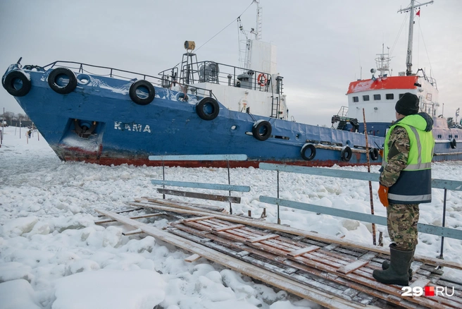 Бревенник — остров в Маймаксанском округе Архангельска, на который ведут сразу две ледовые переправы. Одна соединяет его с Маймаксой, другая — с островом Хабарка. Фотограф 29.RU Иван Митюшёв прогулялся и посмотрел, как здесь пропускают суда, пешеходов и намораживают лед для проезда автомобилей.