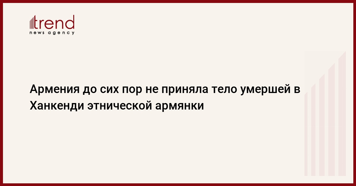 БАКУ /Trend/ - Вера Варасаковна Агасян, 70-летняя этническая армянка, проживавшая в городе Ханкенди Республики Азербайджан, скончалась 20 октября 2024 года около 9-10 часов утра в своем доме.