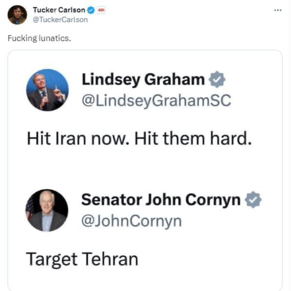 🇺🇸🇮🇷 «Сумасшедшие»: Такер Карлсон о сенаторах, призвавших США нанести удары по Ирану