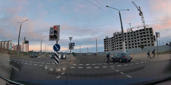 — Ребетенок на красный так летел, что аж ноги с педалей соскочили, — прокомментировал читатель Onlíner, приславший это видео.