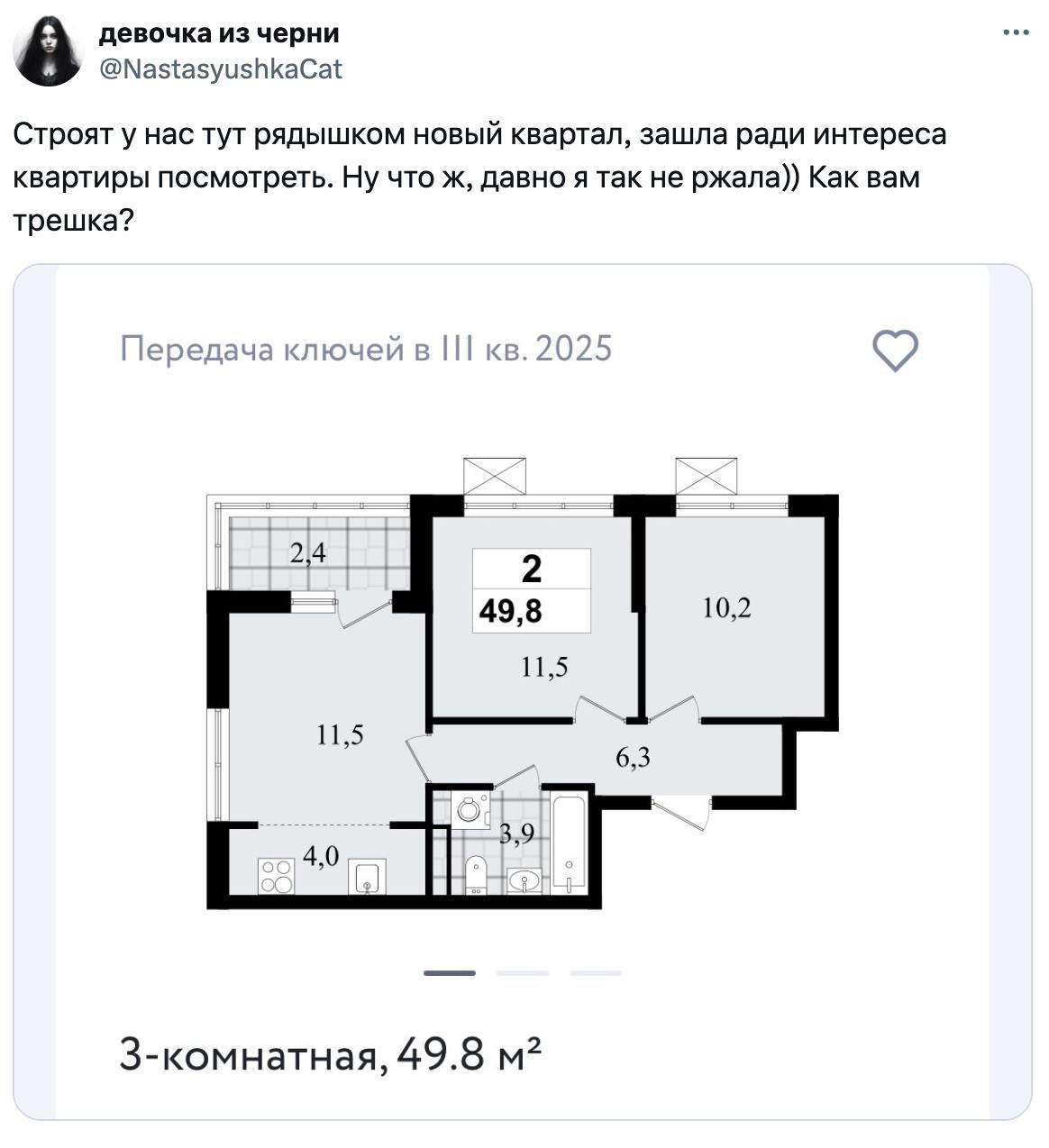 Такие квартиры включают холл площадью 2 кв. м, комнаты размером 8–11 кв. м и совмещённый санузел около 3 кв. м. Стоимость таких «конур» превышает 7 млн рублей.