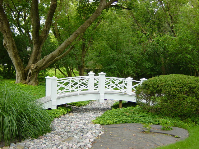 Идея: Декоративный мостик поможет разнообразить протяженные садовые дорожки.
