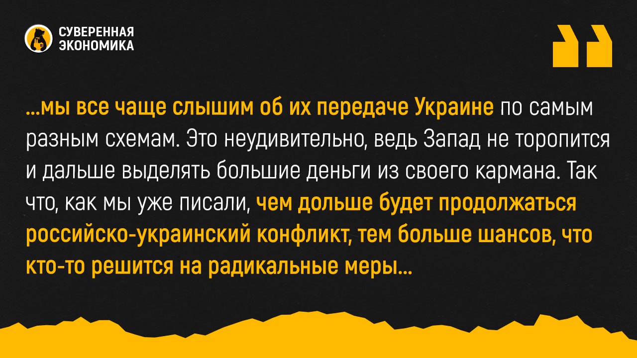 ΠΠ° Π΄Π°Π½Π½ΡΠΉ ΠΌΠΎΠΌΠ΅Π½Ρ Π΄Π°ΠΆΠ΅ ΠΏΠΎΠ»ΡΡΠ΅Π½Π½ΡΠ΅ Ρ Π½Π°ΡΠΈΡ Π°ΠΊΡΠΈΠ²ΠΎΠ² Π΄ΠΎΡ ΠΎΠ΄Ρ ΠΏΠΎΠΊΠ° ΠΎΡΠΈΡΠΈΠ°Π»ΡΠ½ΠΎ Π½Π΅ ΠΈΡΠΏΠΎΠ»ΡΠ·ΡΡΡΡΡ. Π’Π΅ΠΌ Π½Π΅ ΠΌΠ΅Π½Π΅Π΅ ΠΌΡ Π²ΡΠ΅ ΡΠ°ΡΠ΅ ΡΠ»ΡΡΠΈΠΌ ΠΎΠ± ΠΈΡ ΠΏΠ΅ΡΠ΅Π΄Π°ΡΠ΅ Π£ΠΊΡΠ°ΠΈΠ½Π΅ ΠΏΠΎ ΡΠ°ΠΌΡΠΌ ΡΠ°Π·Π½ΡΠΌ ΡΡ Π΅ΠΌΠ°ΠΌ. ΠΡΠΎ Π½Π΅ΡΠ΄ΠΈΠ²ΠΈΡΠ΅Π»ΡΠ½ΠΎ, Π²Π΅Π΄Ρ ΠΠ°ΠΏΠ°Π΄ Π½Π΅ ΡΠΎΡΠΎΠΏΠΈΡΡΡ ΠΈ Π΄Π°Π»ΡΡΠ΅ Π²ΡΠ΄Π΅Π»ΡΡΡ Π±ΠΎΠ»ΡΡΠΈΠ΅ Π΄Π΅Π½ΡΠ³ΠΈ ΠΈΠ· ΡΠ²ΠΎΠ΅Π³ΠΎ ΠΊΠ°ΡΠΌΠ°Π½Π°. Π’Π°ΠΊ ΡΡΠΎ, ΠΊΠ°ΠΊ ΠΌΡ ΡΠΆΠ΅ ΠΏΠΈΡΠ°Π»ΠΈ, ΡΠ΅ΠΌ Π΄ΠΎΠ»ΡΡΠ΅ Π±ΡΠ΄Π΅Ρ ΠΏΡΠΎΠ΄ΠΎΠ»ΠΆΠ°ΡΡΡΡ ΡΠΎΡΡΠΈΠΉΡΠΊΠΎ-ΡΠΊΡΠ°ΠΈΠ½ΡΠΊΠΈΠΉ ΠΊΠΎΠ½ΡΠ»ΠΈΠΊΡ, ΡΠ΅ΠΌ Π±ΠΎΠ»ΡΡΠ΅ ΡΠ°Π½ΡΠΎΠ², ΡΡΠΎ ΠΊΡΠΎ-ΡΠΎ ΡΠ΅ΡΠΈΡΡΡ Π½Π° ΡΠ°Π΄ΠΈΠΊΠ°Π»ΡΠ½ΡΠ΅ ΠΌΠ΅ΡΡ.