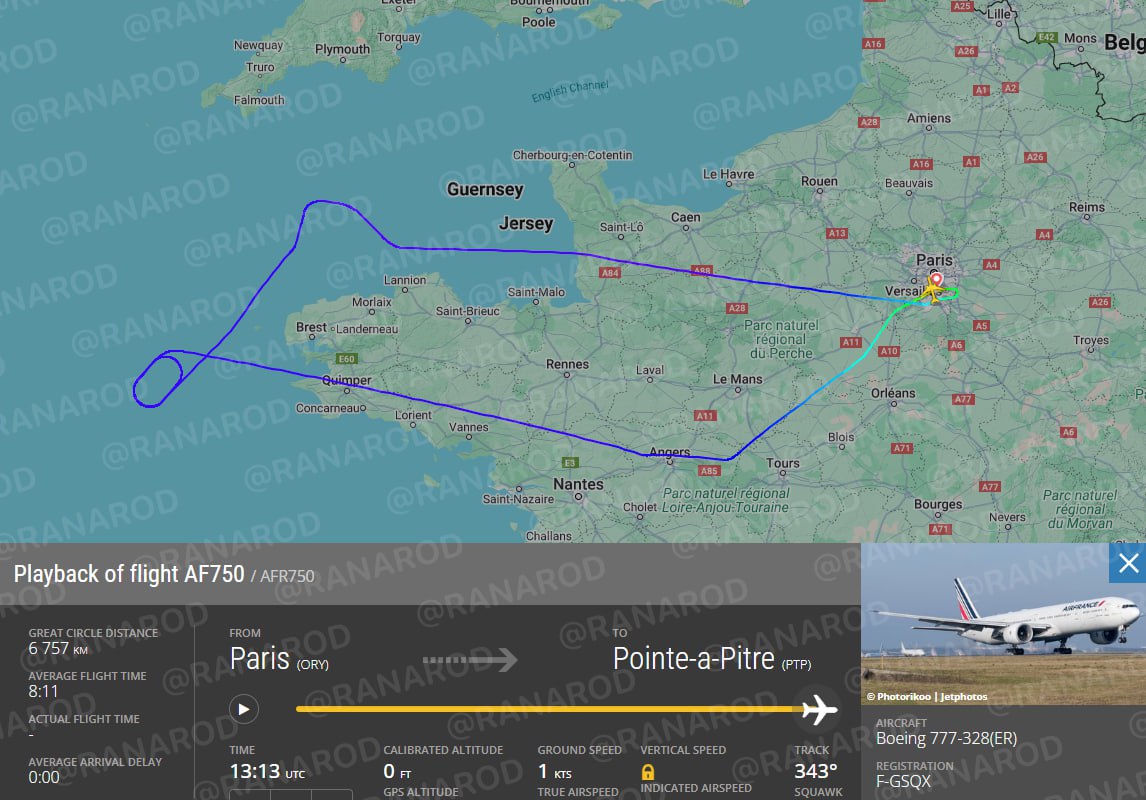 Инцидент случился на рейсе AF750 из Парижа в Гваделупу. Лайнер с 375 пассажирами и 12 членами экипажа вернулся в аэропорт вылета через 2 часа 16 минут после начала полета.