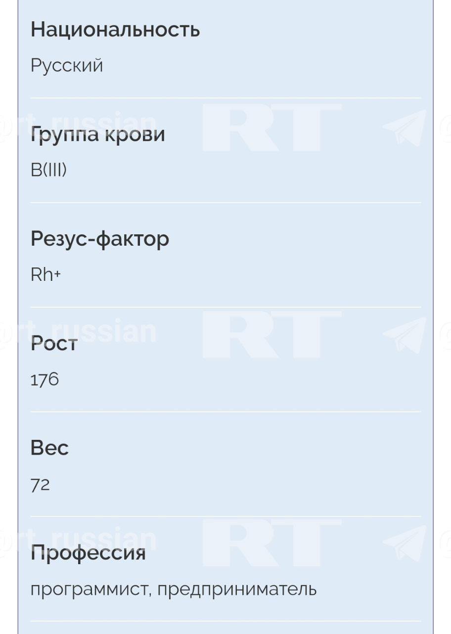 Так выглядит анкета Павла Дурова на сайте клиники, где якобы хранится его сперма.