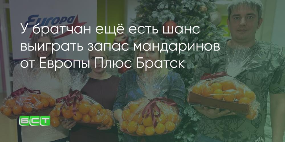 Денис ИШПАЕВ, Света СУВОРОВА, диджеи Европы Плюс Братск: «Осталось два дня, а значит – двадцать килограммов мандаринов! Хочешь, чтобы они стали твоими? Звони нам в Бодрое утро с 8 до 10 утра. Угадай мандариновый хит и забирай большущий запас мандаринов. 41-36-68! Играй в "Мандарин Пати", будь первым! Спонсор игры – спа-бани “Три кита”, уникальное место, куда мы точно отправимся со Светой на новогодних каникулах и отдохнём как следует! Но сначала мандарины раздадим».