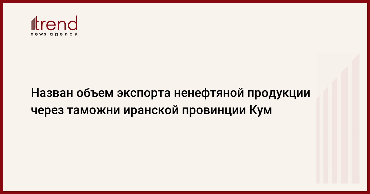 БАКУ /Trend/ - В первом месяце текущего иранского года (с 21 марта по 20 апреля 2025 года) объем экспорта ненефтяной продукции через таможни провинции Кум, расположенной в центральной части Ирана, увеличился в стоимостном выражении на 33 процента по сравнению с аналогичным периодом прошлого года (с 20 марта по 19 апреля 2024 года).