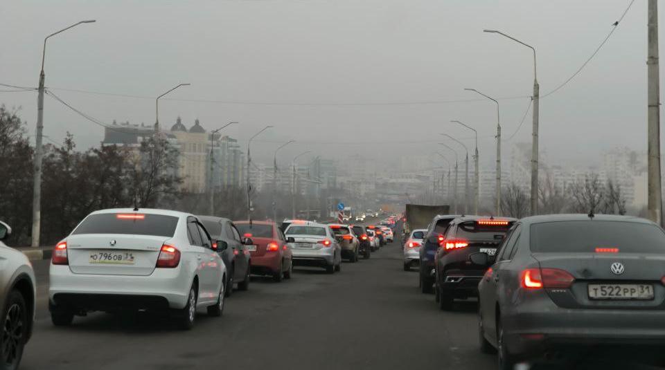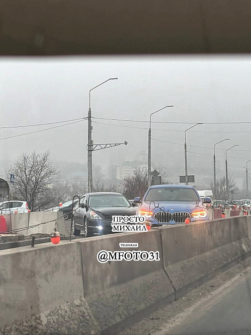 Из-за ДТП на Новом мосту в Белгороде образовалась большая пробка. Ситуацию усугубляет и то, что автомобильный мост на проспекте Ватутина сейчас ремонтируют.