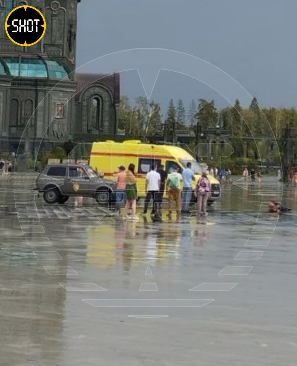 Пострадавшие от удара молнии в парке "Патриот" мужчины — в критическом состоянии. Когда приехала скорая, они уже не дышали. Сейчас на площади перед храмом проводятся реанимационные действия.