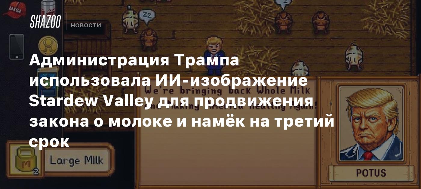 Администрация Трампа использовала ИИ-изображение Stardew Valley для продвижения закона о молоке и намёк на третий срок