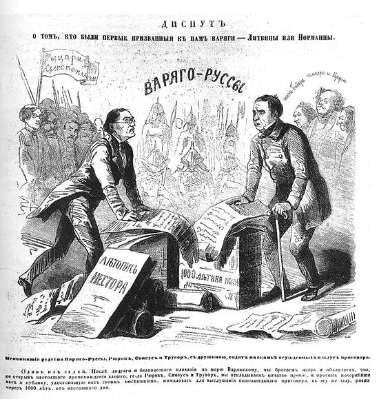 Трижды в истории российской науки вопрос о происхождении этнонима «русь» и этнической принадлежности Рюрика служил темой научных дискуссий: участниками первой из них были Г.Ф. Миллер и М. В. Ломоносов, второй, состоявшейся почти столетие спустя, – норманист М.П. Погодин и антинорманист Н. И. Костомаров, – и, наконец, в 1965-м г., – оппонентами в ней выступили А.С. Клейн и И.П. Шаскольский.