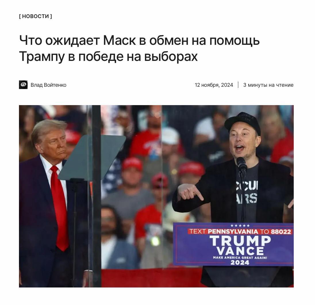 Илон Маск сильно помог Дональду Трампу выиграть выборы президента США. Стало известно, что ожидает глава Tesla и SpaceX за помощь в предвыборной гонке.