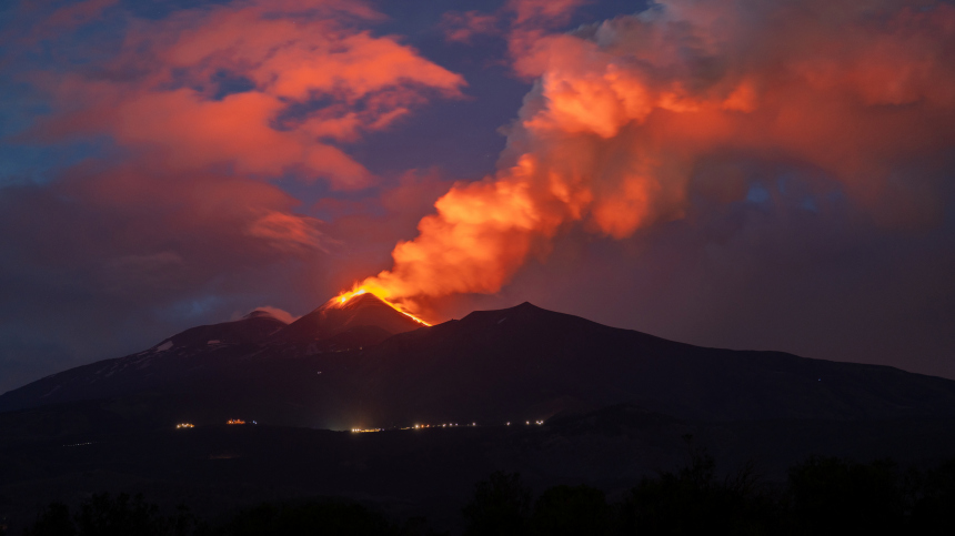 Вулканы становятся активнее. Тремя днями ранее началось извержение Ключевской сопки. Пока без угрожающих последствий. Реальную опасность сейчас представляет Этна в Италии. Этой ночью началось четвертое извержение в этом месяце.