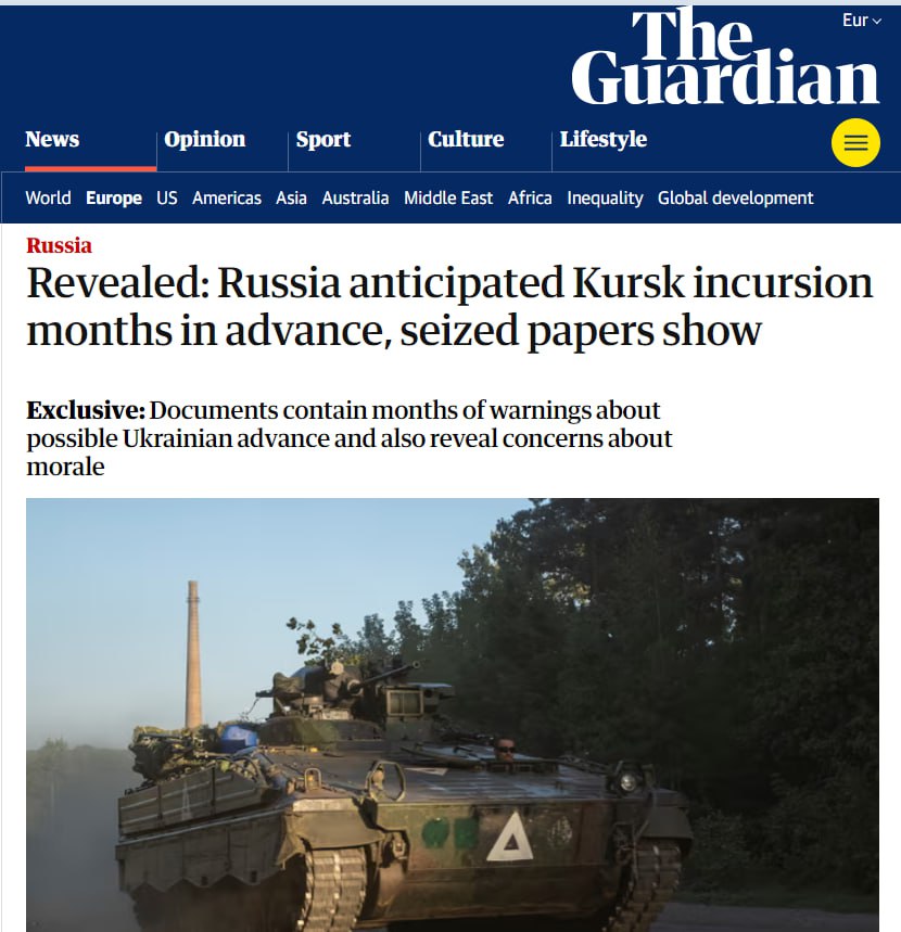 Армия РФ могла знать о вторжении ВСУ в Курскую область за несколько месяцев, — The Guardian