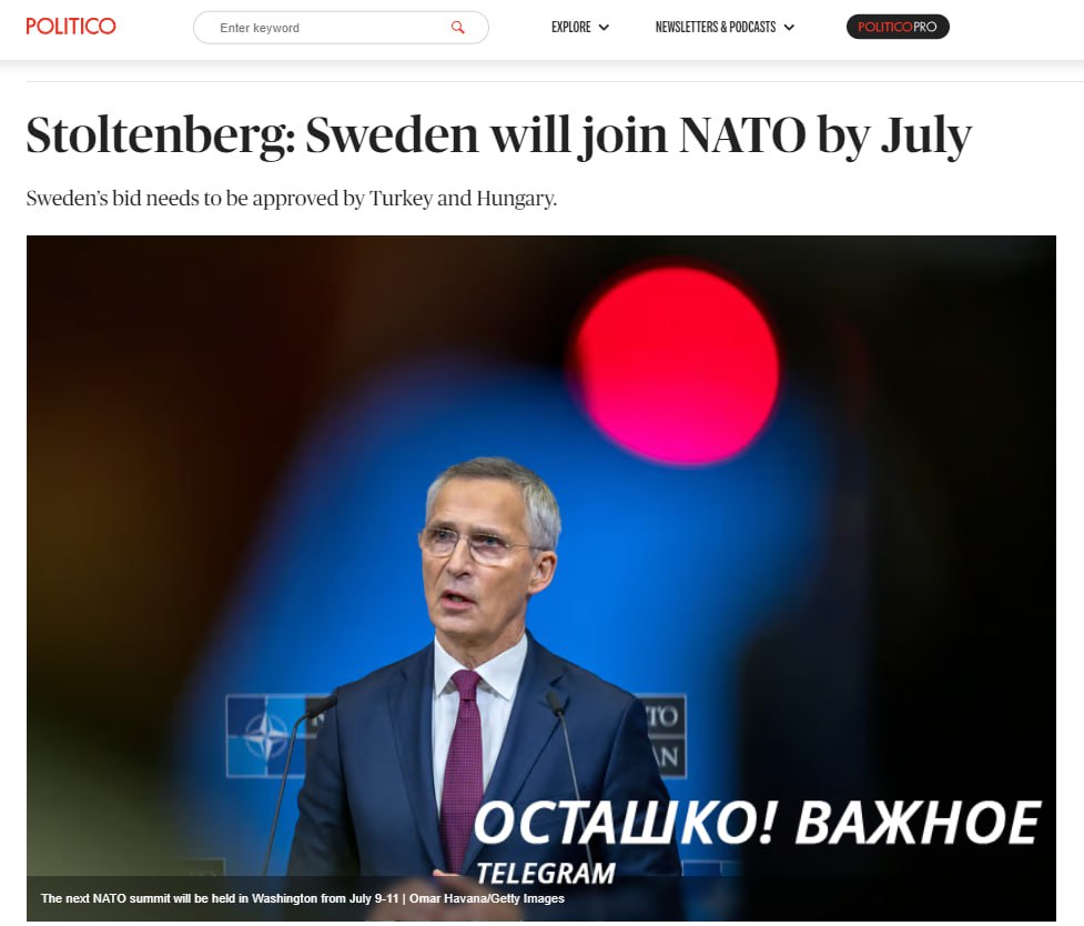 🇸🇪🇫🇲 Швеция может вступить в НАТО к июлю — Politico