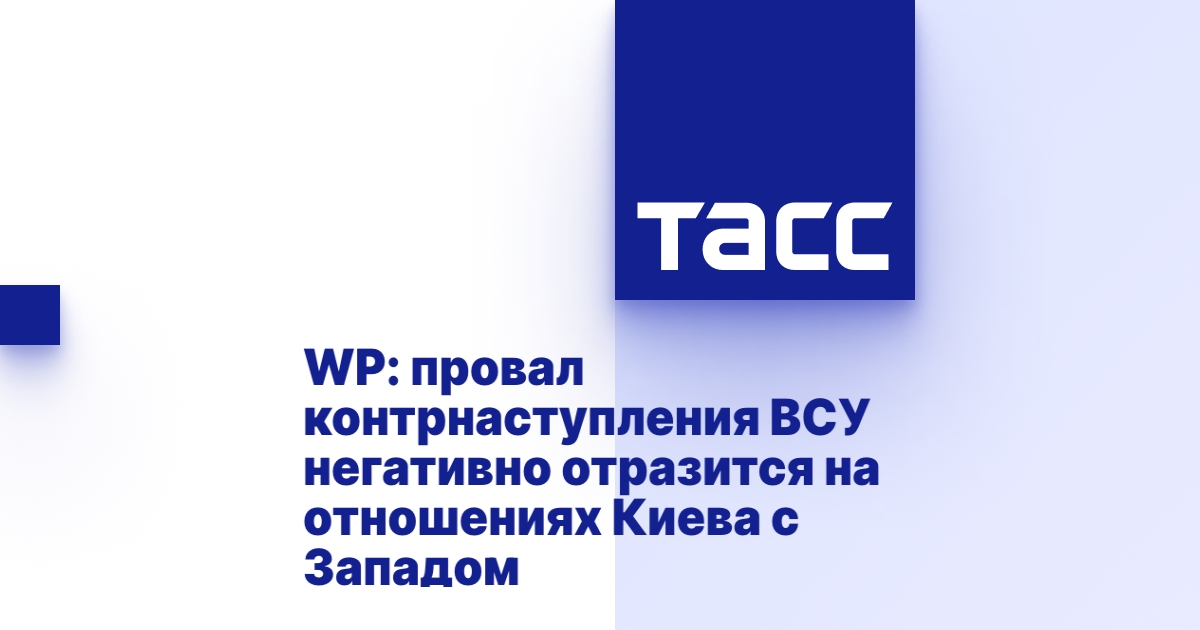 ВАШИНГТОН, 14 июня. /ТАСС/. Неуспешное контрнаступление Вооруженных сил Украины (ВСУ) может негативно сказаться на отношениях Киева с западными странами. Об этом в среду сообщила газета The Washington Post.