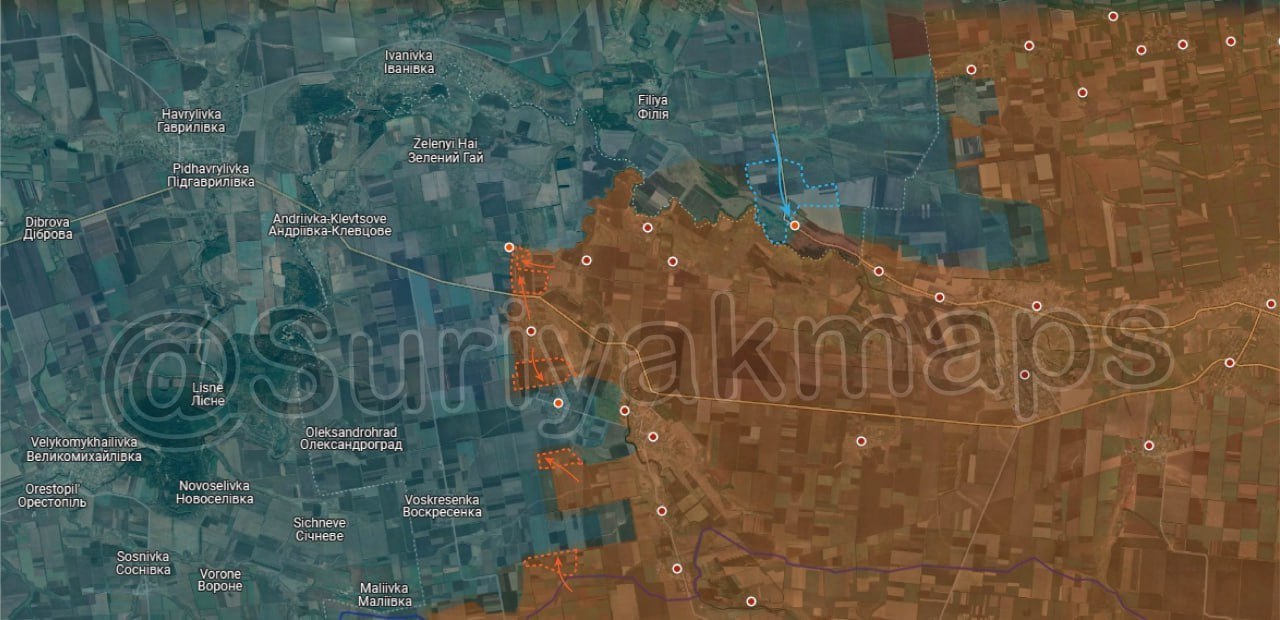 За последние семь дней ВСУ контратаковали к северу от Дачного и смогли отбить окраины населенного пункта, войдя в первые дома. В то же время российские войска по-прежнему контролируют большую часть Дачного. С другой стороны, российская армия заняла новые территории к востоку и югу от Толстого, к северу и югу от Мирного (который находится в полуокружении), а также взяла ряд укреплений к северо-востоку от Шевченко.