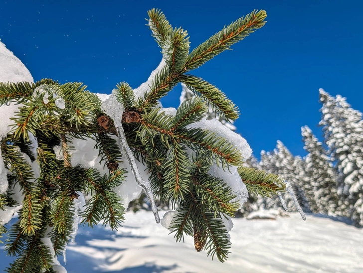 23 — во столько раз кутикула хвои (восковое покрытие, защищающее иголки от мороза и других агрессивных атмосферных влияний) у голубой ели толще, чем у зеленой. Толщина покрытия определяет цвет иголок. У североамериканских видов елей хвоя более «вощеная», а потому имеет голубой оттенок. В суровые зимы слой воска еще сильнее утолщается, и иголка становится сизо-белой.