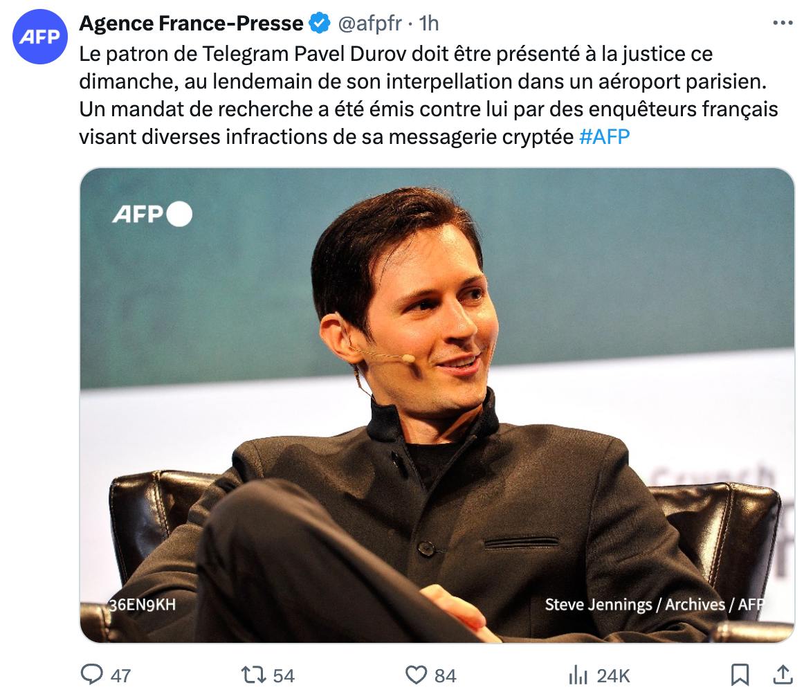 Агентство со ссылкой на близкий к расследованию источник пишет, что основатель Telegram прибыл из Азербайджана и планировал провести как минимум один вечер в Париже.