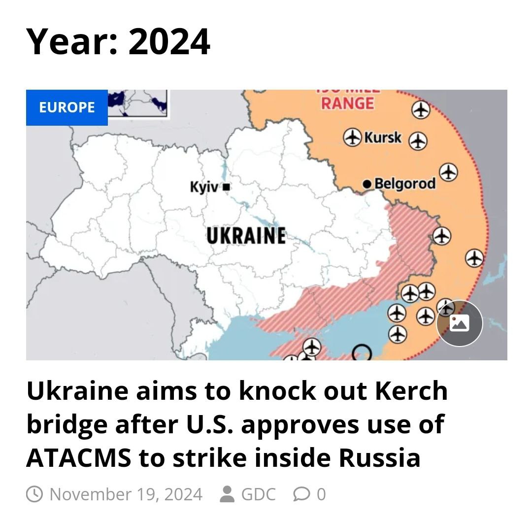 По мнению аналитиков центра, после того, как США одобрили использование ATACMS для ударов по территории России, ВСУ будут пытаться наносить удары не только по стратегическим объектам, но и "по некоторым целям, повышающим боевой дух", и одной из таких целей станет Керченский мост.