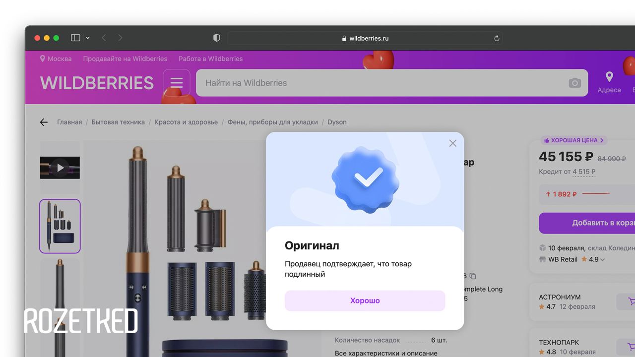 На Wildberries у товаров популярных брендов стали появляться синие галочки с подписью «Оригинал». Для получения значка достаточно предоставить договор с производителем или официальным дистрибьютором.