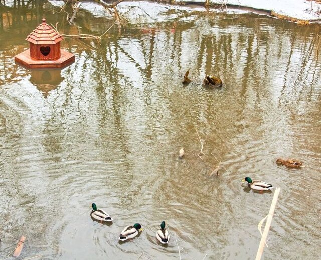 Новый домик для уток — часть обустройства Серебрянского парка, которое проходит в рамках проекта «Зеленое кольцо». В пресс-службе городской администрации объяснили: несмотря на то, что утки не живут в домиках, это сооружение выполняет важную функцию — безопасное место для отдыха на воде. Также в районе Утиного моста появилась смотровая площадка, сейчас проходит планировка участка у визит-центра, там намерены построить детскую площадку, а также места для ворк-аута и отдыха.