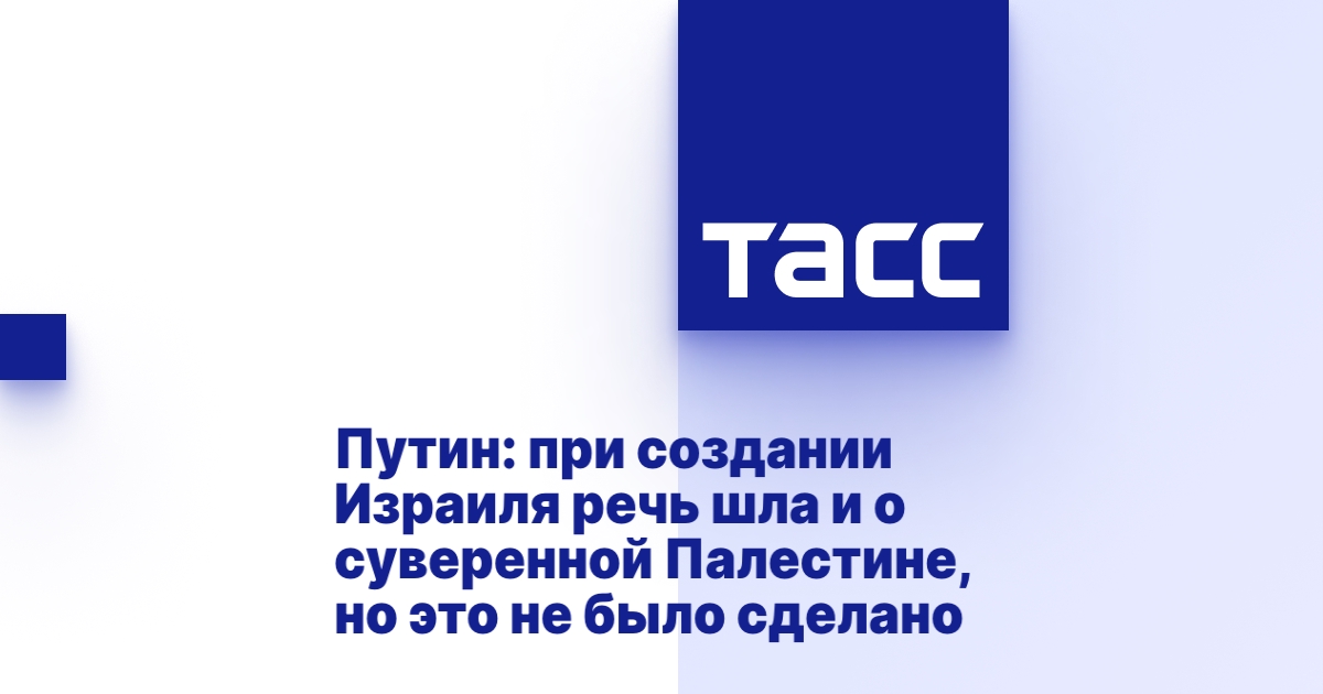 "Изначально, когда принималось решение о создании Государства Израиль, было принято одновременно параллельно и решение о создании второго государства. Речь шла изначально о создании двух независимых и суверенных государств - Израиля и Палестины", - указал президент. "Израиль, как известно, создан, а Палестина как самостоятельное и суверенное государство так и не создана", - подчеркнул Путин.