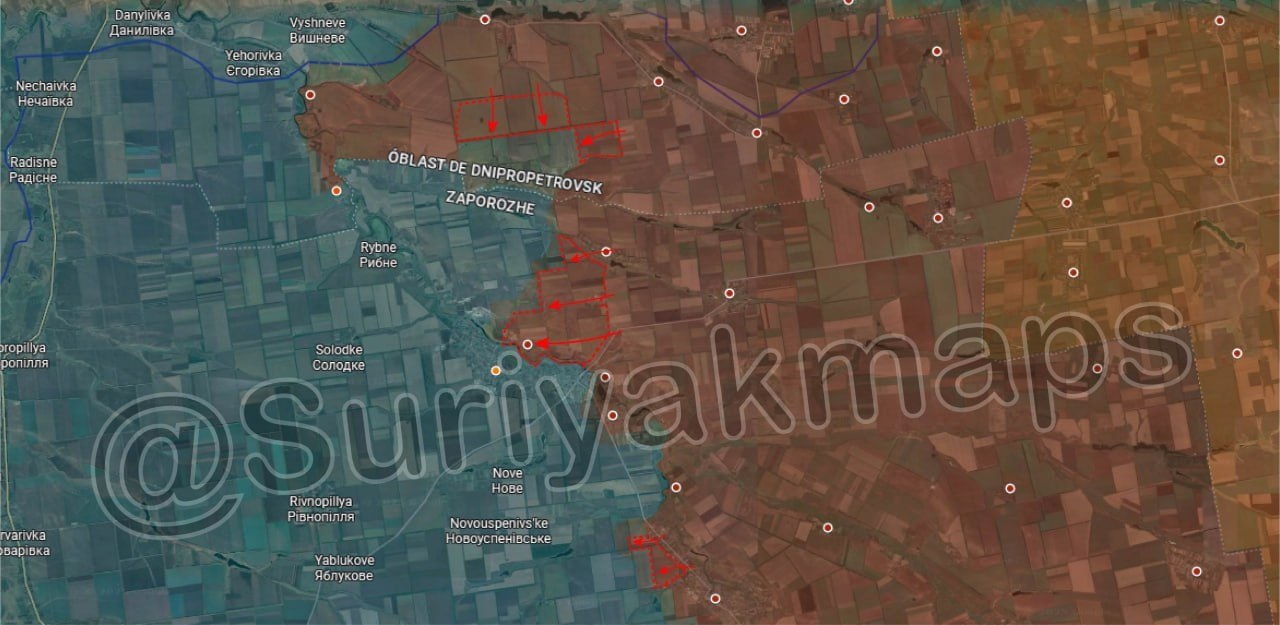 Обстановка Гуляйпольском направлении: За последние три дня российская армия установила полный контроль над населенным пунктом Павловка и складами к юго-западу от Новогригоровки. Кроме того, российские войска продолжили зачистку позиций к северу от долины «Скотоватая Балка». Также за последние 48 часов российские подразделения продолжили продвижение к западу от Полтавки.