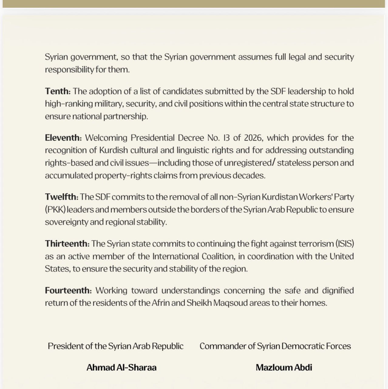 ▪️полная интеграция СДС в структуры Министерства обороны Сирии на индивидуальной основе