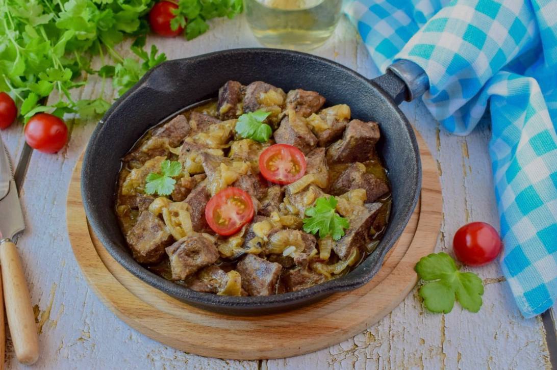 1. Очистите печень от плёнок и нарежьте небольшими кусочками. Промокните бумажными полотенцами, чтобы удалить кровь.
