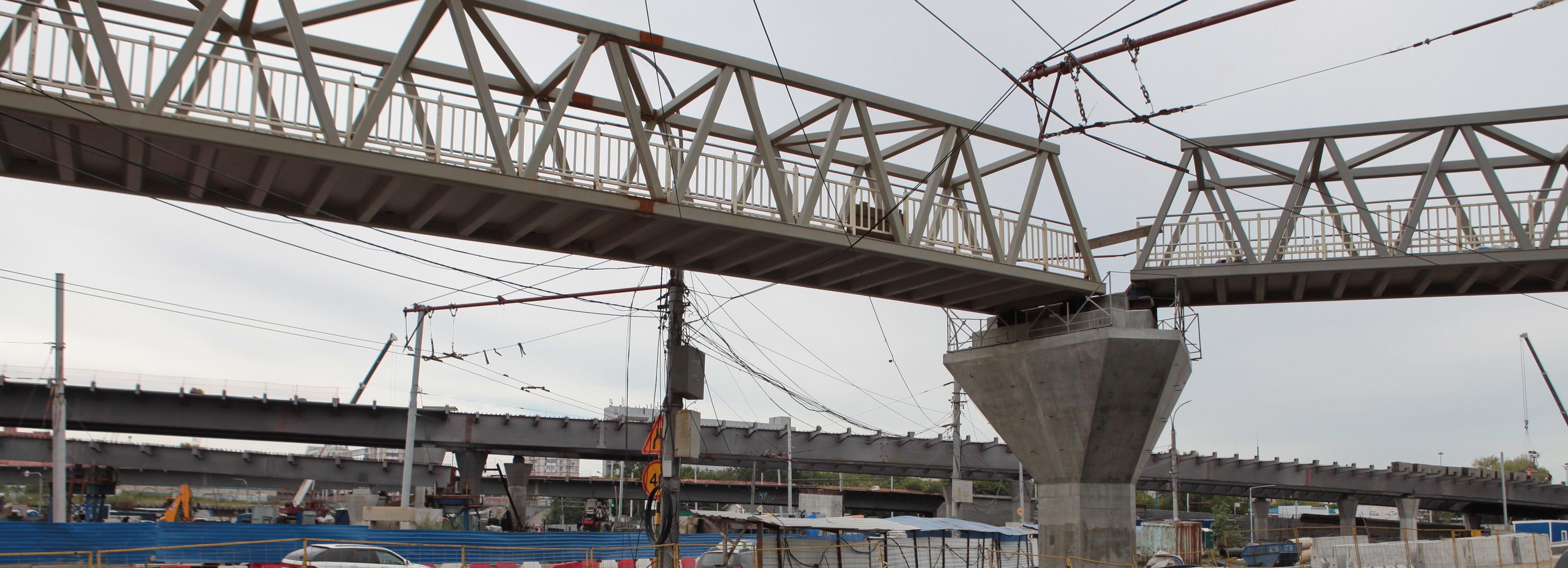 В ночь перед Днём строителя подрядчик смонтировал пролётное строение для надземного перехода №1 над проездом Энергетиков.