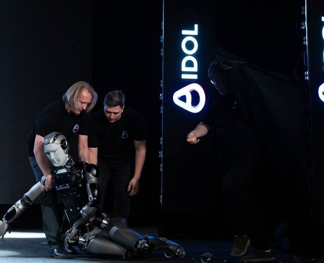 Антропоморфный робот Aidol, которого помогал создавать «Промобот», упал на собственной презентации под песню из фильма «Рокки»