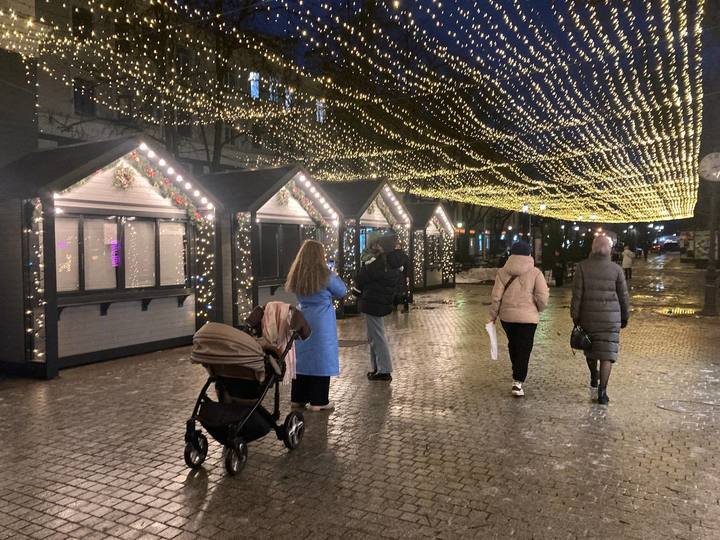 Гирлянду «Световой потолок» зажгли на улице Пушкина в Пскове сегодня, 22 декабря, передает корреспондент «МК в Пскове».