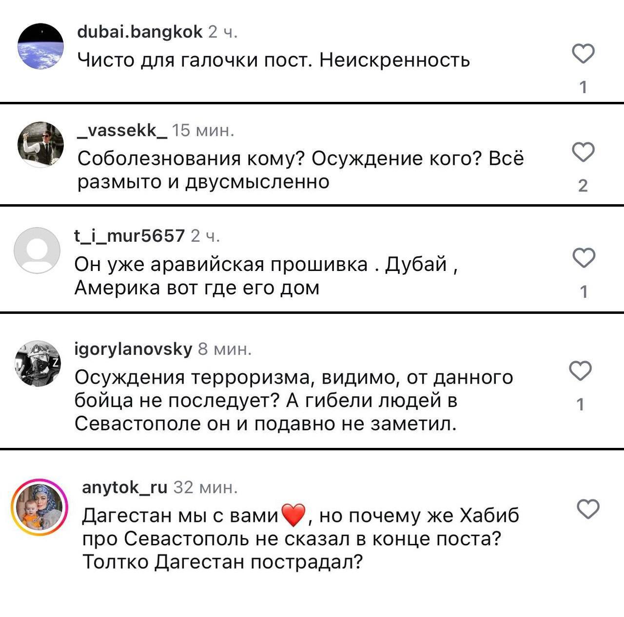 «Почему же Хабиб про Севастополь не сказал в конце поста? Только Дагестан пострадал?»;