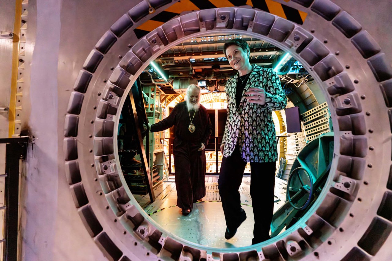Патриарх в воскресенье посетил лабораторный комплекс научно-технологического университета "Сириус", а также комплексный стенд орбитального корабля «Буран», заглянув в его кабину (фото РПЦ).