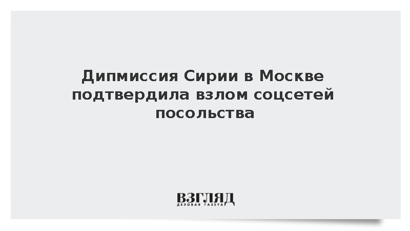 Соцсети дипмиссии Сирии в Москве, в частности, Telegram-канал, подвергся взлому. Никакой официальной информации о смене посла республики не поступало, передает ТАСС.