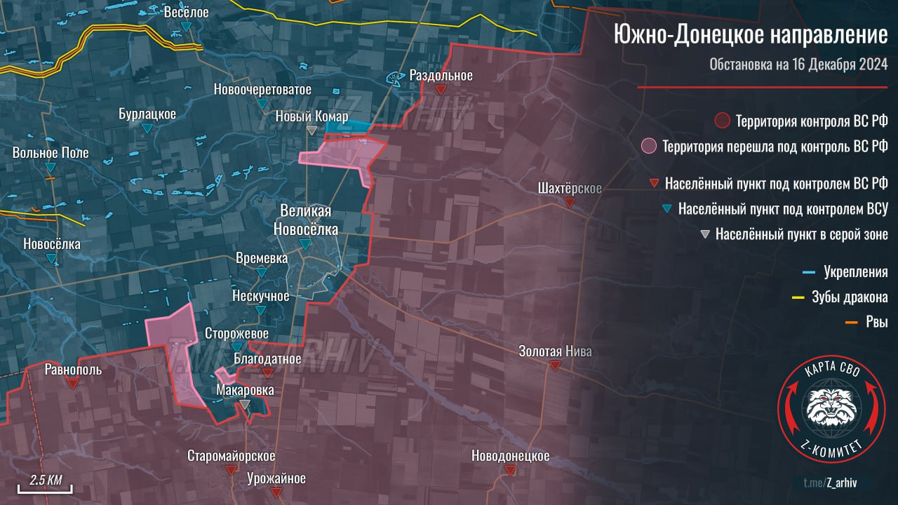 1. Продвижение ВС РФ у Сторожевого и Нового Комара (так же небольшая корректировка зоны контроля у населенного пункта).