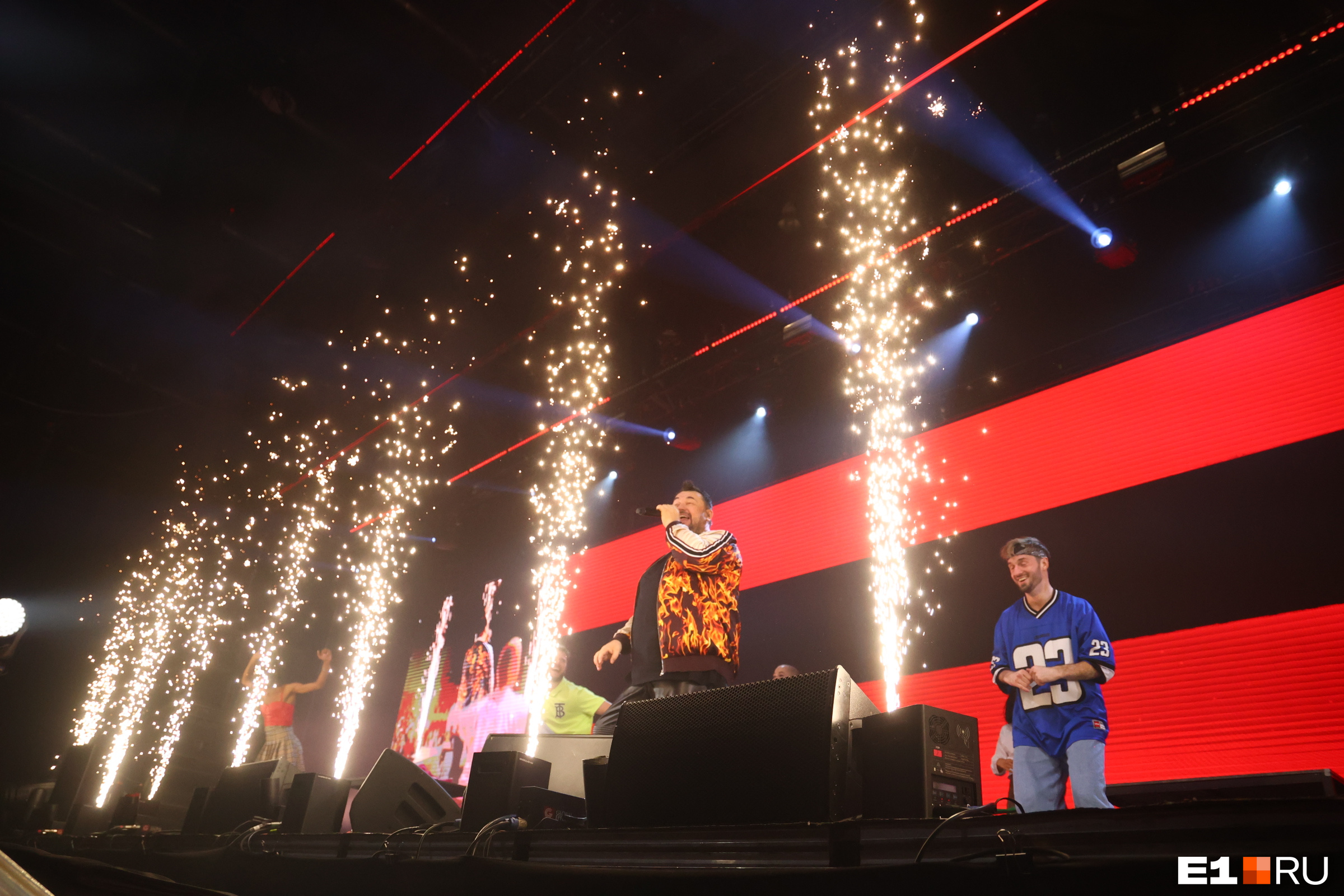 На концерте был практически аншлаг — 15 тысяч человек. Площадка, к слову, может собрать и больше. Фотографу Владиславу Лоншакову удалось попасть в фотопит — это пространство между сценой и зрителями, а я же осталась среди народа. Истинные фанаты сразу заняли места ближе к Жукову, мне же подобраться к нему так и не удалось. Однако артист был виден даже в самом конце зала благодаря огромному экрану. Отличный живой звук и визуальные спецэффекты сделали это шоу очень дорогим.