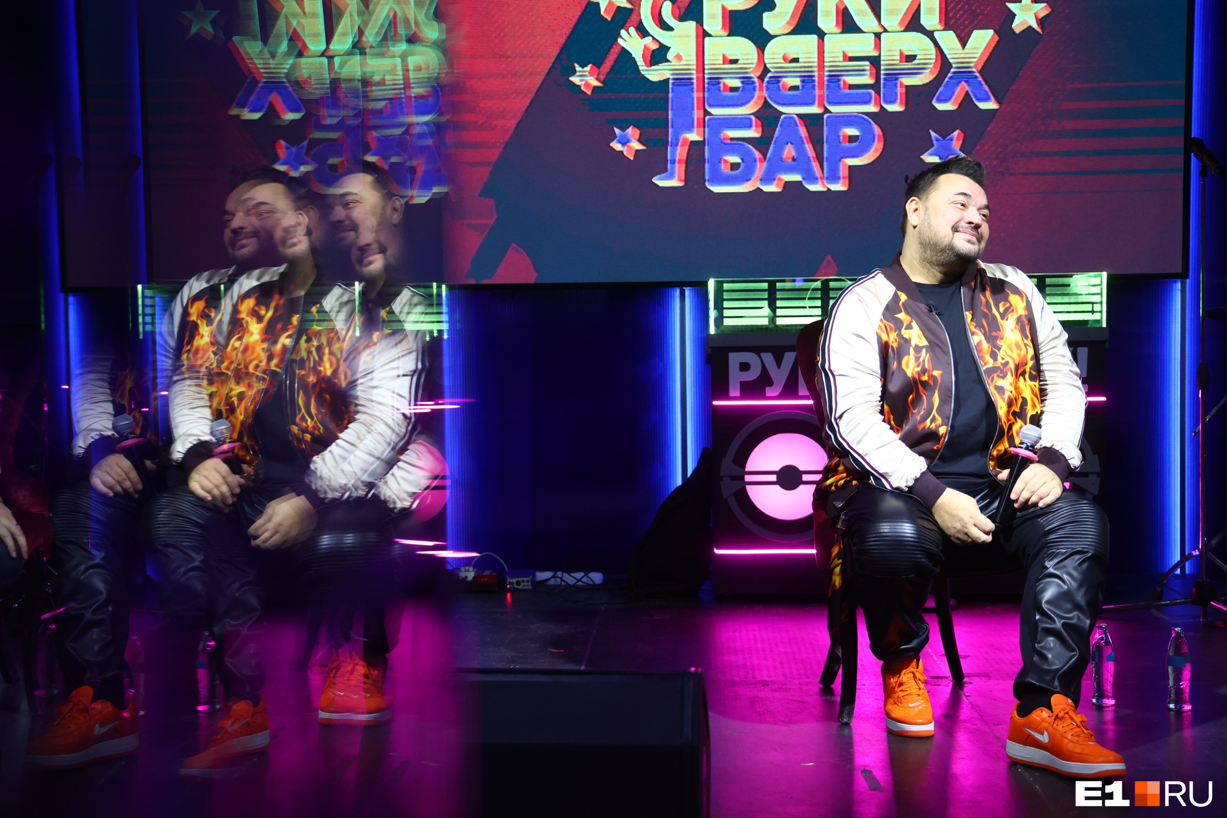 Хотелось бы отдать должное артисту, который весь день посвятил Екатеринбургу. С 16:00 до часу ночи он или выступал на сцене, или был в дороге. Практически без опозданий Сергей Жуков приехал в «Руки Вверх! Бар» на пресс-конференцию. Именно с этого момента началось наше с ним знакомство.
