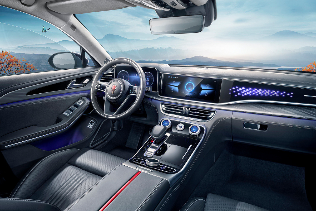 Четырехдверка сохранила радиаторную решетку в стиле Rolls-Royce и двухэтажную головную оптику. Однако у расположенных сверху дневных ходовых огней отныне другая светодиодная начинка (как у младшего седана Hongqi H5), а блоки основных фар стали больше. Флагману также достались новые бамперы, вдобавок модернизировали выставленные напоказ патрубки выпускной системы. Габариты в целом прежние: длина – 5137 мм, ширина – 1904 мм, высота – 1498 мм, колесная база – 3060 мм.