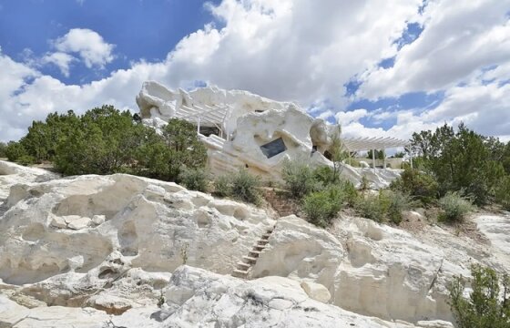 Даже зная, где расположен один из самых удивительных загородных домов штата Нью-Мексико, вряд ли кто сможет его обнаружить среди причудливых скальных образований. А все потому, что креативная пара – удачливый ювелир и известная художница, решили построить совсем необычное убежище, глядя на которое сложно определить, где заканчиваются причудливой формы валуны белой скалы и начинается вполне реальное жилище под названием Casa de Roca.