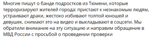 На данных видео всего два азербайджанца. Остальные ребята другой национальности, но почему-то в некоторых телеграм-каналах прямо заявляется, что там представители нашей диаспоры. Мы выясняли. Это обычный бытовой конфликт между одноклассниками, который снимала девочка. Она выложила это в Сеть. Видео подхватили телеграм-каналы националистической направленности, работающие вне нашей страны, они призывают к национальной розни. Я призываю не поддаваться на провокации. Тюмень - это многонациональный город, где люди живут в мире и дружбе.Мустафаев подчеркнул, что в конфликте участвовали и русские, и азербайджанцы, якобы из одной компании.Никаких бандитских ОПГ, естественно, там нет. С молодежью проводится профилактическая работа.В ситуации разбираются силовики.