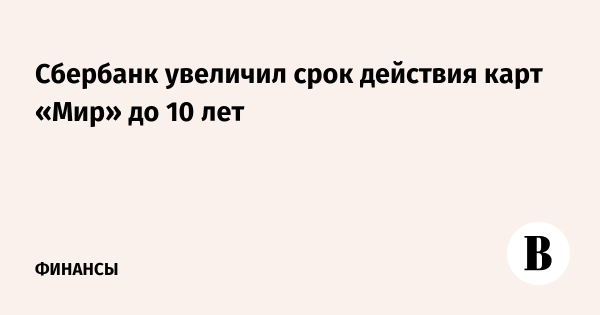 Срок действия карты «Мир» увеличится в два раза до 10 лет, по дебетовым картам такая система начала действовать в сентябре, сообщил первый заместитель предправления Сбербанка Кирилл Царев.