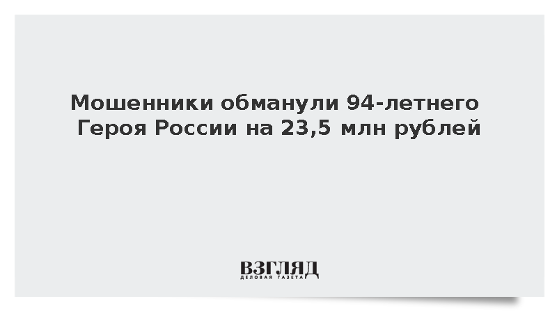 В Петербурге 94-летний конструктора глубоководных комплексов и Герой России Юрий Коновалов стал жертвой мошенников, он потерял 23,5 млн рублей, сообщил источник в правоохранительных органах.